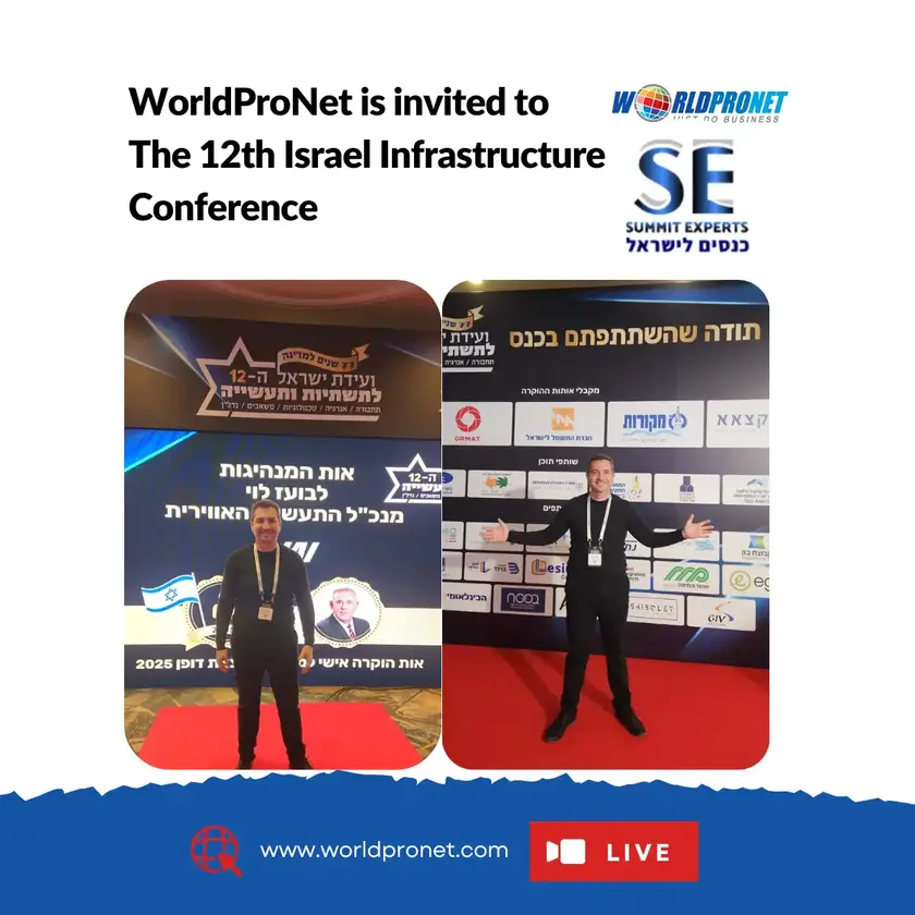WorldProNet is attending the 12th Israel Infrastructure Conference, the leading event addressing economic challenges, with a focus on transportation, energy, industry, natural resources, and real estate, alongside senior officials and key stakeholders.