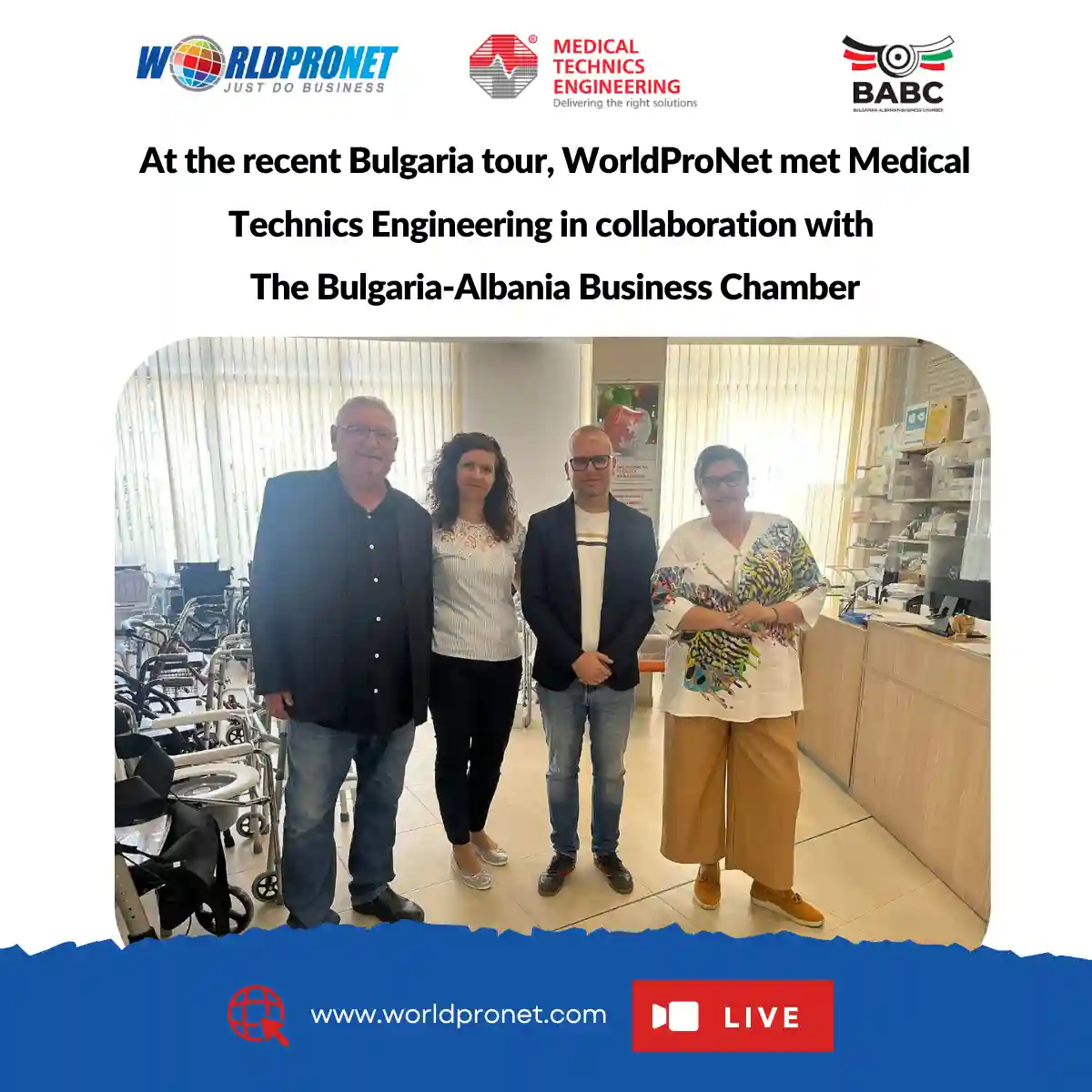 As part of its recent Bulgaria tour, WorldProNet met with Medical Technics Engineering in collaboration with the Bulgaria–Albania Business Chamber (BABC) to explore new opportunities in healthcare innovation, medical technology distribution, and regional business expansion. The discussion focused on advancing cross-border collaboration between Southeast Europe and global markets, aligning with WorldProNet’s mission to build bridges that connect innovation, people, and sustainable growth. This meeting represents another milestone in WorldProNet’s ongoing effort to expand its international presence and foster impactful partnerships that deliver real-world value across industries. #WorldProNet #Bulgaria #MedicalTechnicsEngineering #BABC #HealthcareInnovation #GlobalPartnerships #BusinessExpansion #Networking #MedicalTechnology